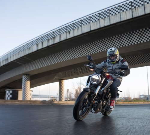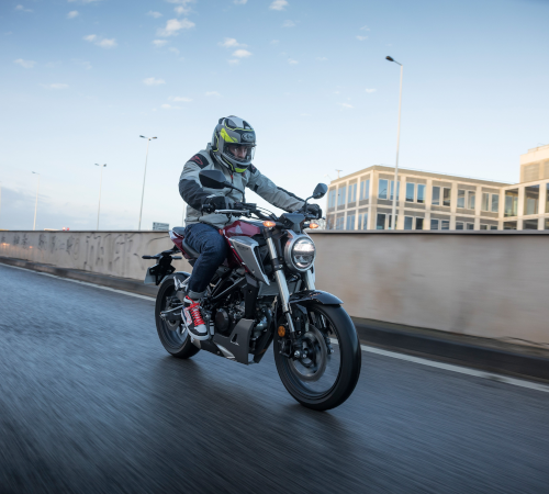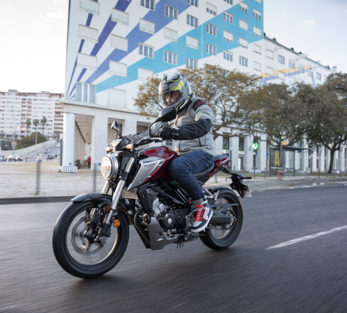 Die Größe der CB 125 R ist ideal für ein weitsichtiges und aufrechtes Sitzen.