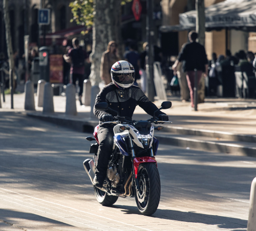 Die Größe der CB 500 F ist ideal für ein weitsichtiges und aufrechtes Sitzen.