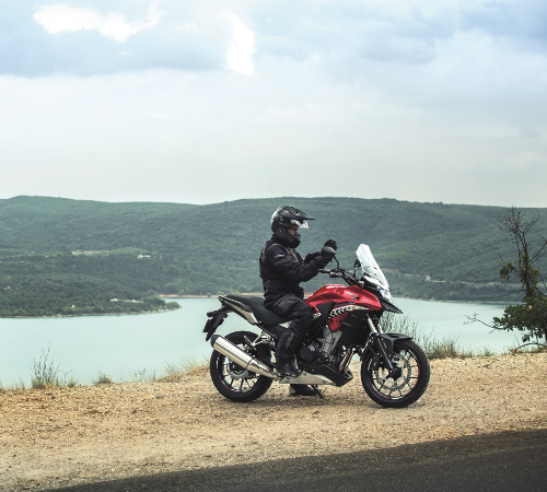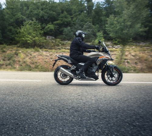 Die Größe der CB 500 X ist ideal für ein weitsichtiges und gerades Sitzen.