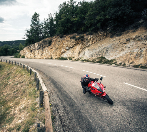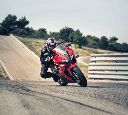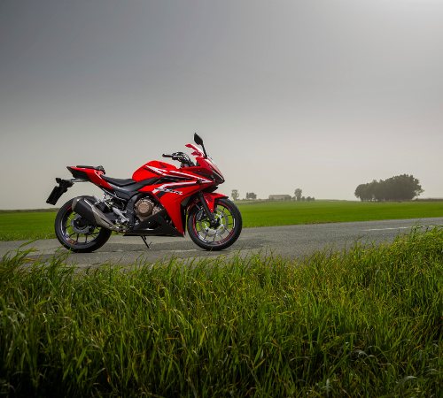 Dementsprechend sprüht das schneidige Profil der CBR 500 R nur so vor aggressiver Präsenz und verbessertem aerodynamischen Styling. Aber Optik alleine ist nicht alles - der flüssigkeitsgekühlte Zweizylindermotor mit 471 cm³ Hubraum wurde so optimiert, dass er einen gleichmäßig kräftigen Antritt hat, das Getriebe verfügt zudem über ein sportlicheres Übersetzungsverhältnis und das Fahrwerk wurde auf ein agileres und leichteres Handling abgestimmt.