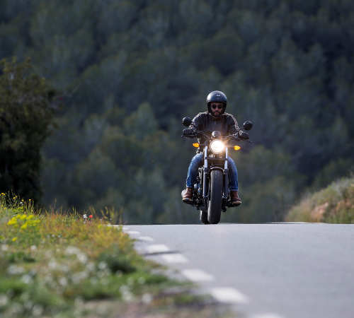 Das Bike glänzt mit schlanken Dimensionen, niedriger Sitzhöhe und mühelosem Handling bei niedrigen Geschwindigkeiten. Mit leicht ausgestreckten Armen und neutral positionierten Fußrasten nimmt der Fahrer eine aufrechte und entspannte Fahrposition ein.